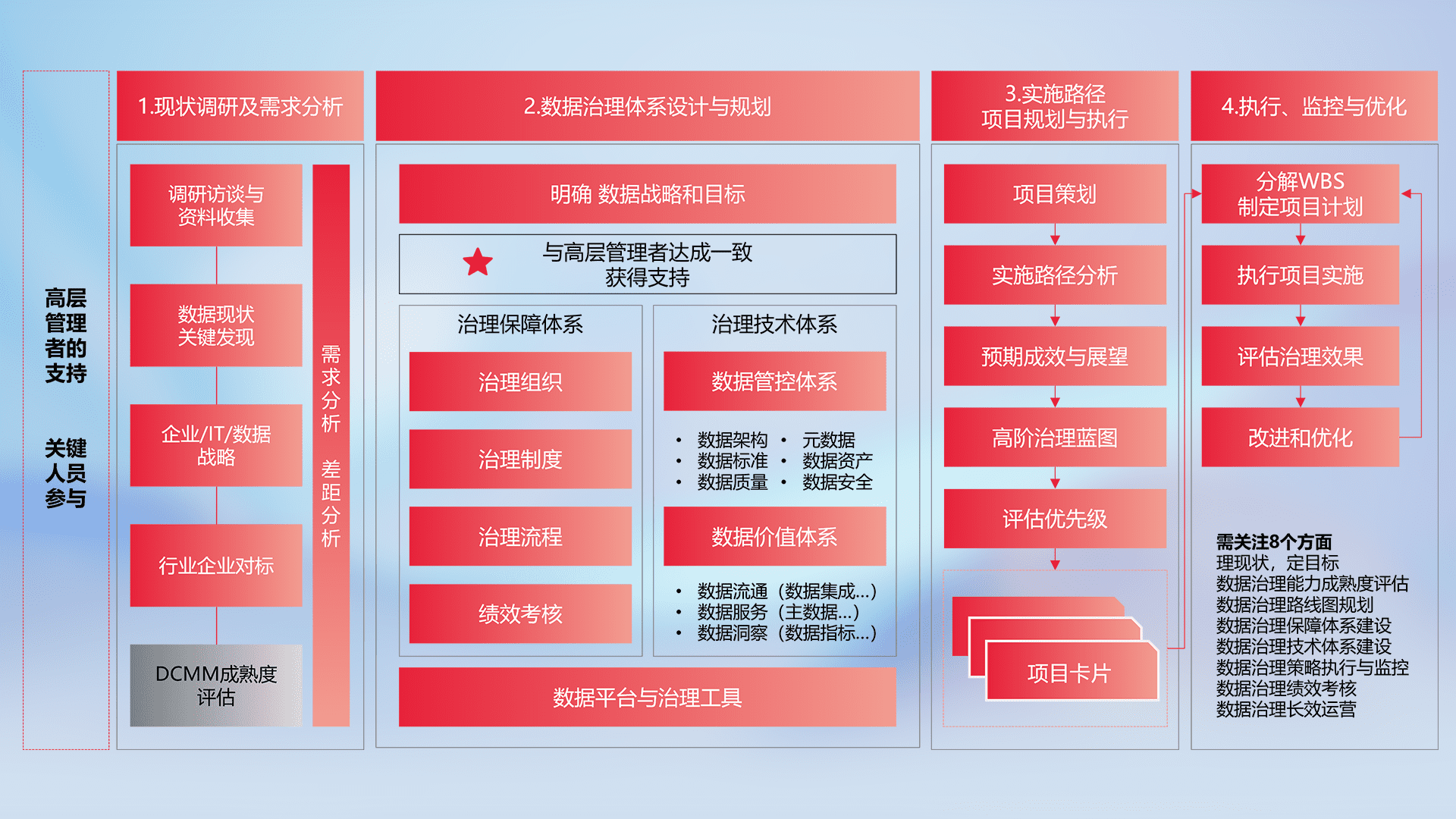 制定并执行统一的数据标准,,,,规范数据定义和格式,,,,消除冗余和不一致性,,,,实现跨部门和跨系统的数据一致性,,,,为企业提供标准化的数据基础。。。。